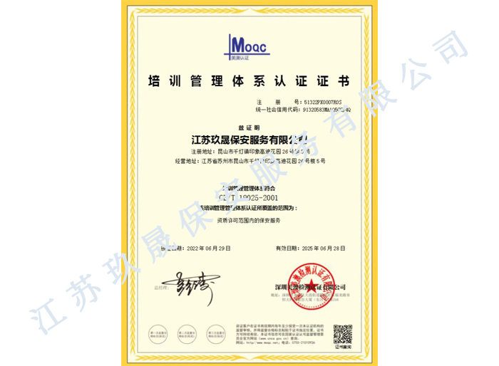 江蘇玖晟保安服務(wù)有限公司成立于江蘇省昆山市千燈鎮(zhèn)。注冊(cè)資金:5000萬(wàn),是擁有省公安廳頒發(fā)的保安服務(wù)許可證的企業(yè)【蘇公保服20170046】,也是昆山市保安協(xié)會(huì)常務(wù)理事單位。